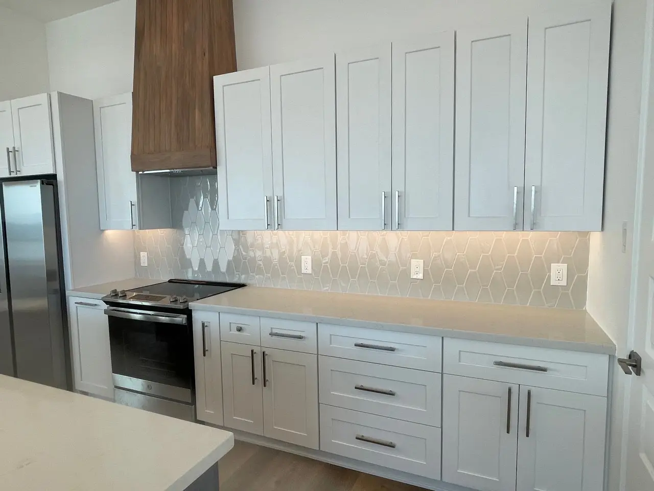 The most design-forward home in our portfolio, Blue Heron pushes the boundaries of coastal luxury. A residential elevator connects all levels, while the dramatic black-and-white kitchen centers on a veined quartz waterfall island that commands attention. Five individually designed bathrooms each stand as a work of art — from curated tile selections to custom vanities and designer hardware.